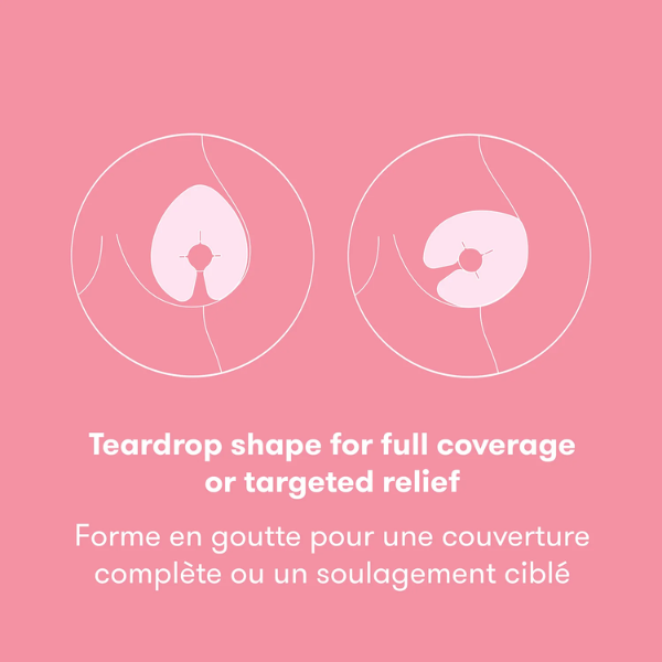 The flexible teardrop shape contours to the breast for full coverage or targeted therapy, staying soft and pliable even when frozen. Compatible with most pumps, these reusable packs provide continuous comfort and support throughout your breastfeeding experience.