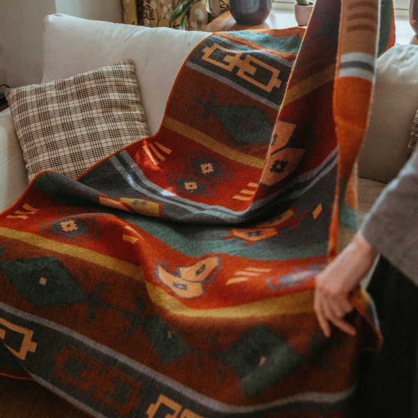 Geometric, boho-classic, and vintage-inspired, this blanket feels like a true heirloom—designed to be loved and remembered. The Southwest Blanket brings understated sophistication and rustic warmth to your space, layering in effortless boho character. With its luxurious alpaca-blend feel, it’s easy to imagine evenings by the campfire, wrapped up and lingering a little longer.
