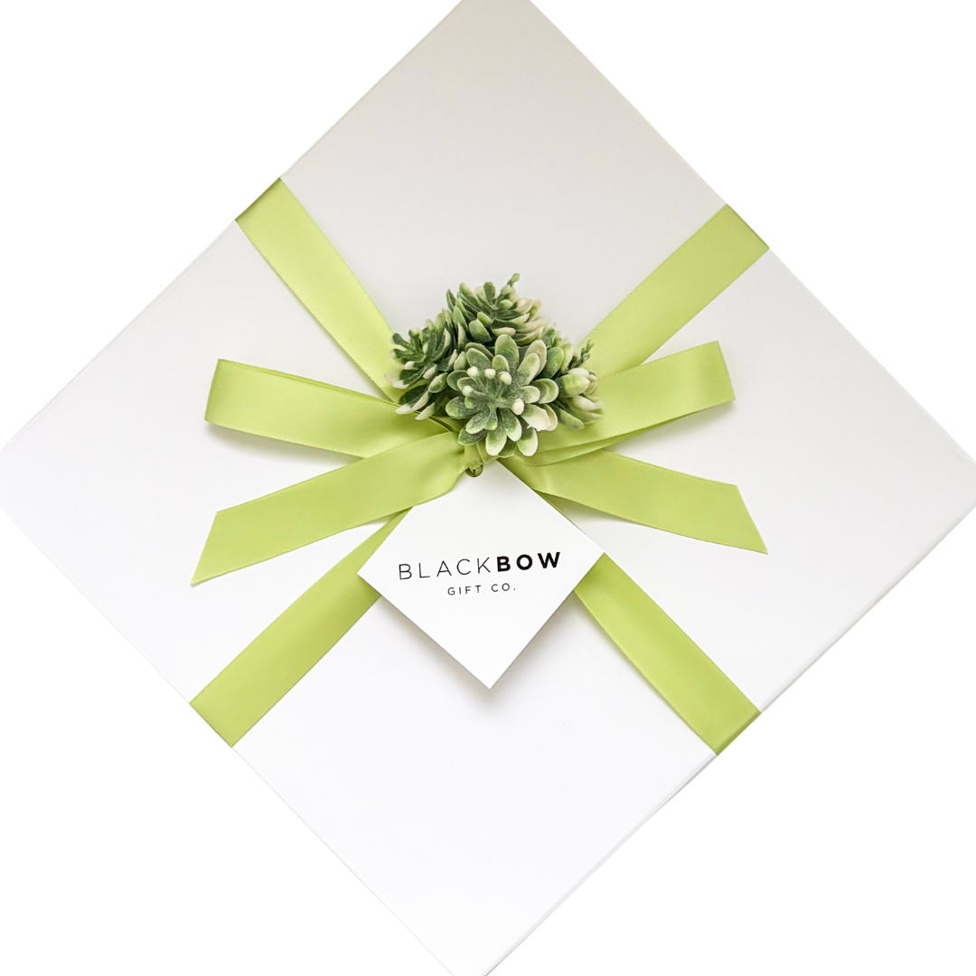- A beautiful white liner and Black Bow Gift Co. tear-resistant seal creates extra luxury and ‘WOW’ effect when the lid is removed giving the recipient time to pause and read your thoughtful message while still keeping the contents of your gift a lovely surprise for just a little while longer…