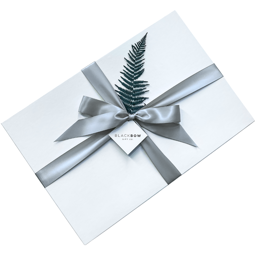 - Your gift box is tied perfectly with a premium double satin ribbon (as shown) and is accented with our hand-selected and seasonal preserved florals, greenery and other naturals making each gift that much more special and unique