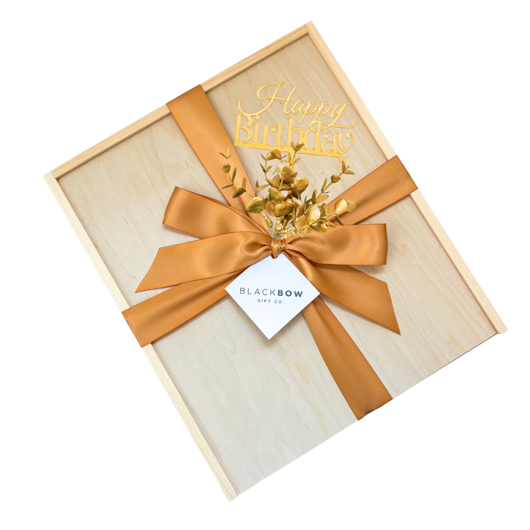- Gold Premium Double Satin Ribbon With Birthday Accent (As Shown)