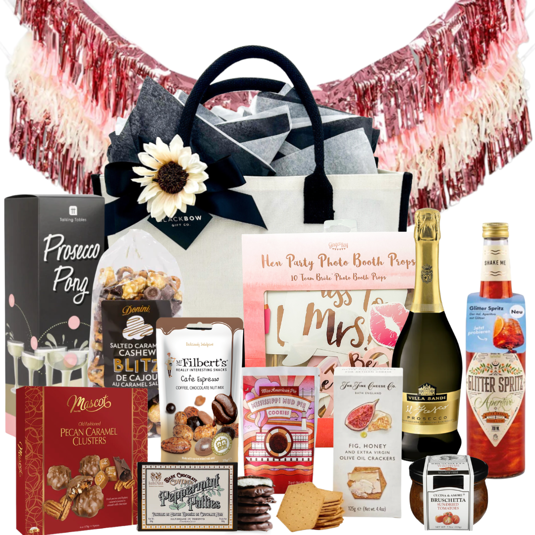 A playful and stylish party gift made for unforgettable bachelorette moments, packed with prosecco, party games, and sweet indulgences.