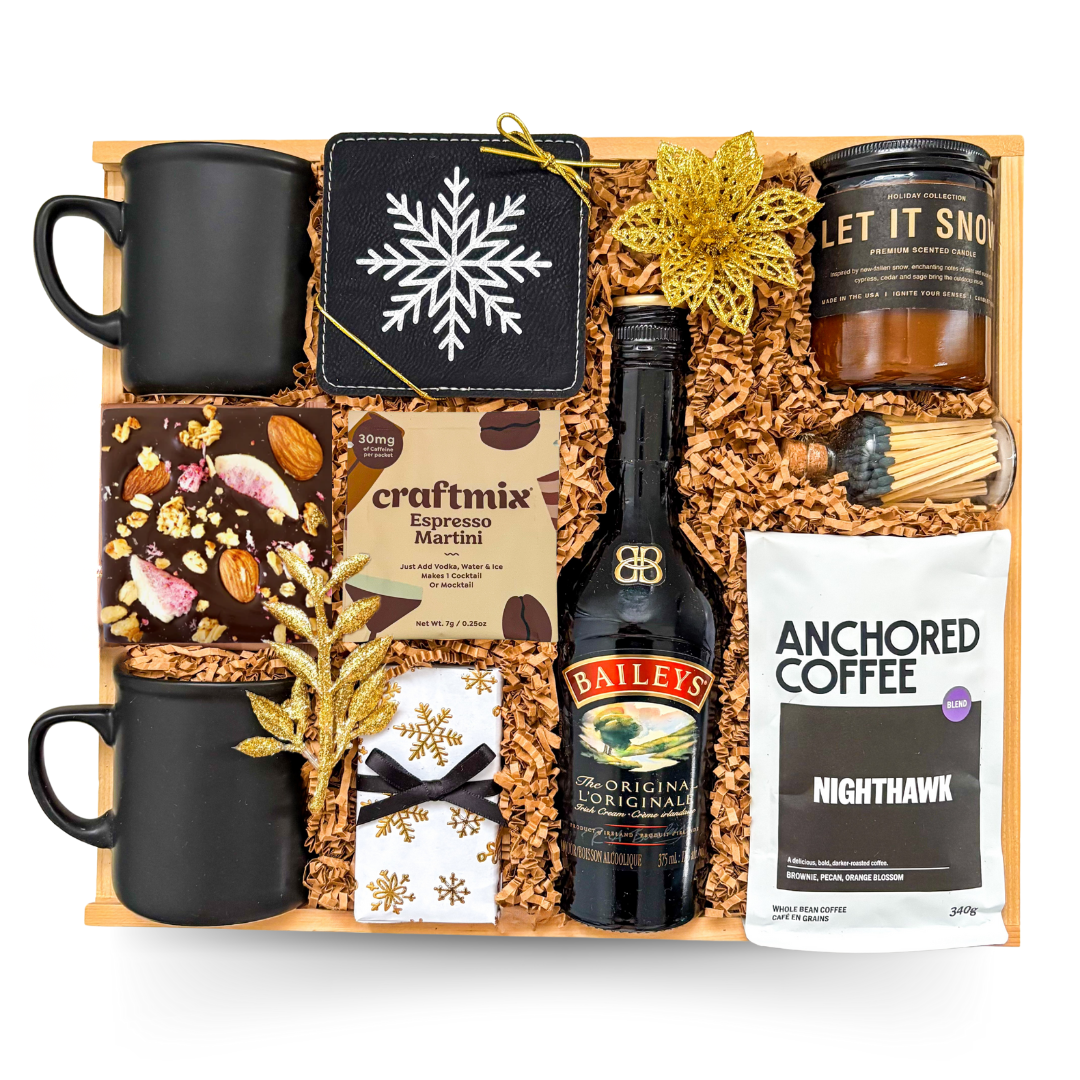 The Fireside Gift is crafted for cozy winter evenings and memorable celebrations. Featuring Baileys with perfectly paired gourmet accents, this gift delivers warmth, comfort, and indulgence. Choose a festive holiday presentation with an ornament, or keep it timeless with a jar of premium artisan honey — making it a versatile choice for Christmas gifting or winter occasions beyond the holidays. Perfect for clients, friends, or anyone who deserves a refined seasonal treat.