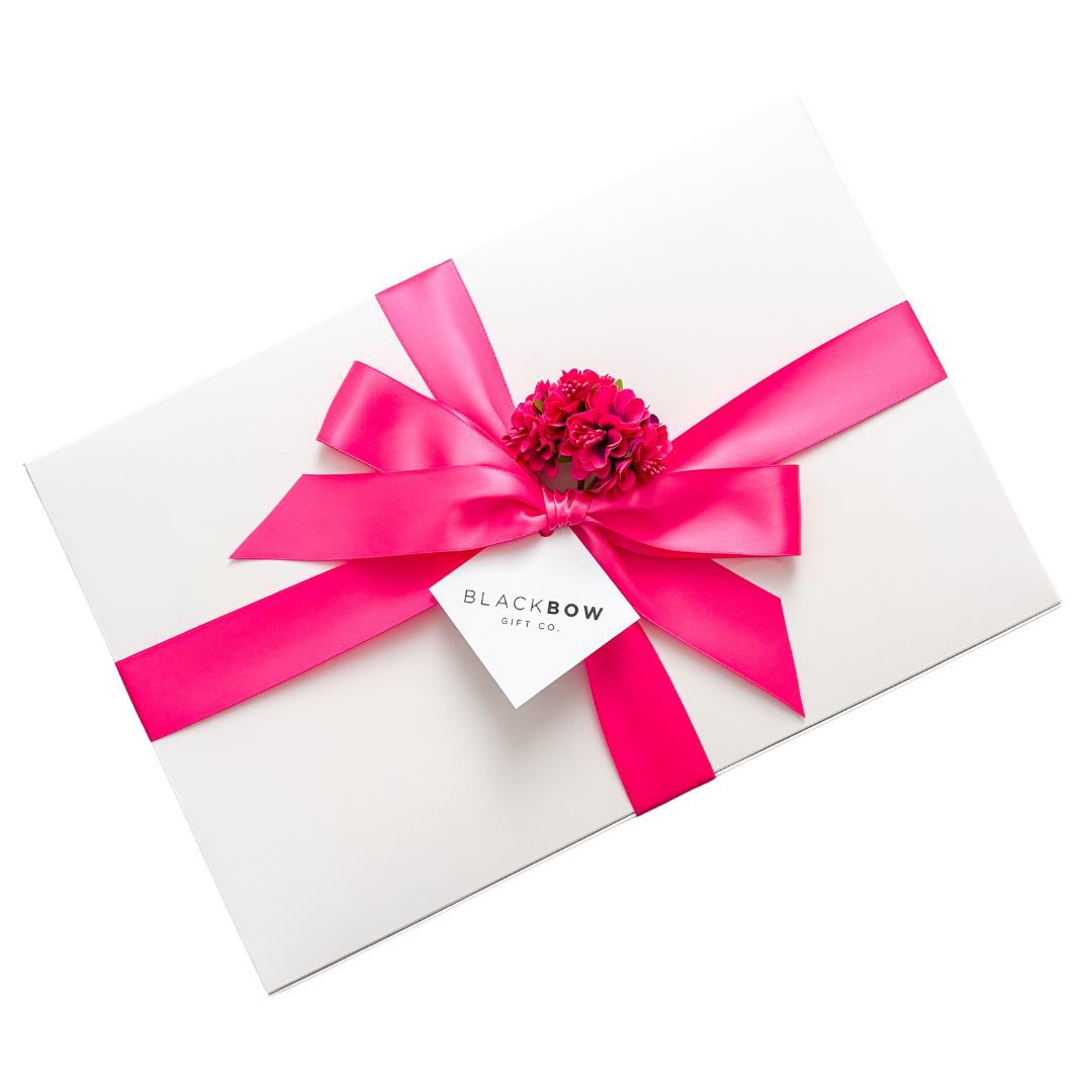 - Your gift box is tied perfectly with a premium double satin ribbon (as shown) and is accented with our hand-selected and seasonal preserved florals, greenery and other naturals making each gift that much more special and unique