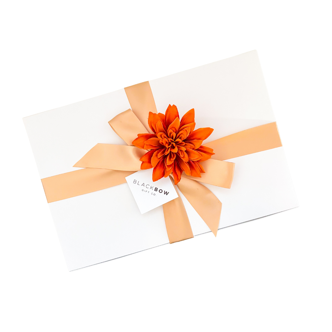 - Your gift box is tied perfectly with a premium double satin ribbon (as shown) and is accented with our hand-selected and seasonal preserved florals, greenery and other naturals making each gift that much more special and unique