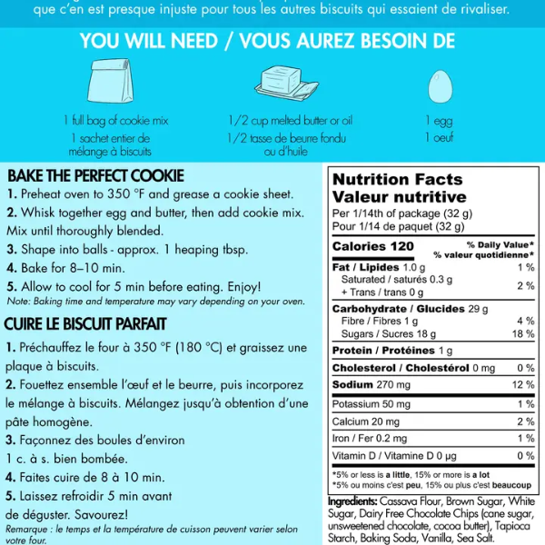 Bake up fresh, warm, and irresistibly delicious cookies in minutes with our Gluten-Free Chocolate Chip Cookie Mix. Crafted with care and made from premium ingredients like cassava flour and tapioca starch, these cookies are so soft, chewy, and flavourful — you’d never guess they’re gluten-free!